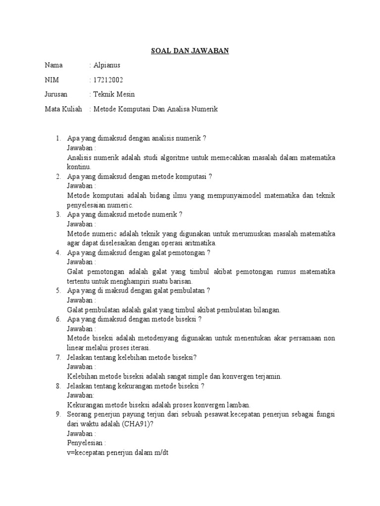 Teknik Informatika Soal Uts Metode Numerik from data03.123doks.com Contoh soal dan jawaban data berkala. Berikut contoh soal cpns kategori intelijensi umum numerik: Contoh soal dan jawaban metode simpson. Pemakaian metode analitik terkadang sulit diterjemahkan kedalam algoritma yang dapat dimengerti oleh komputer. Hasil tpa juga dapat menjadi ukuran kemampuan berkomunikasi dan bernalar calon mahasiswa. Contoh soal tes kemampuan numerik dan jawabannya. Contoh soal tpa numerik dan jawabannya. 20200716 contoh contoh soal numerik beserta jawabannyadownload contoh soal psikotes 2019 matematika gambar polri bank karayawan deret angka pdf cpns sma online.